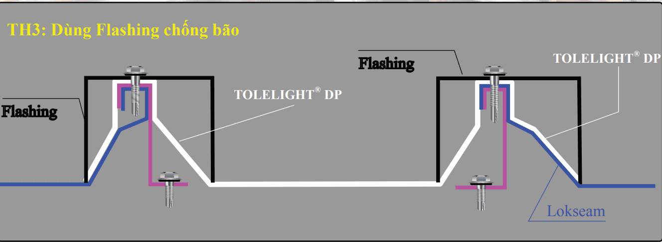 - Đối với kiểu sóng Metklip, Kliplock, Lokseam phải là 300mm.