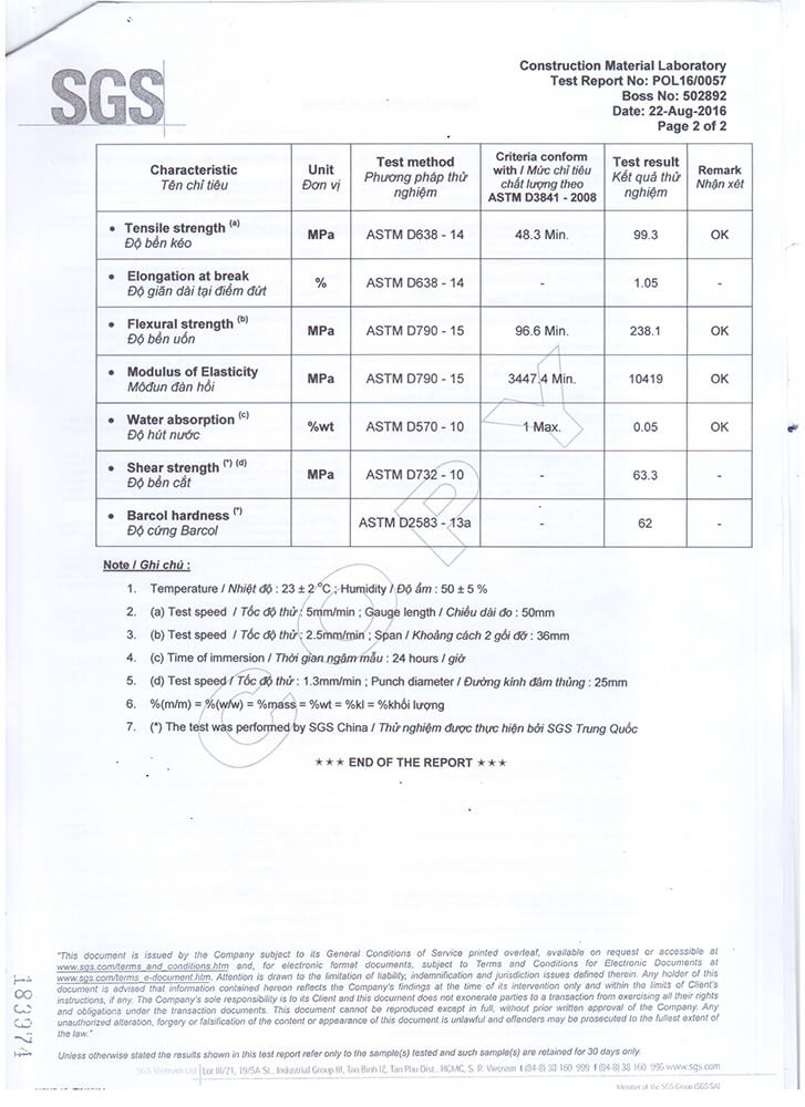 Kiểm nghiệm độ bền cơ học ASTM D638-14 cấp bởi SGS