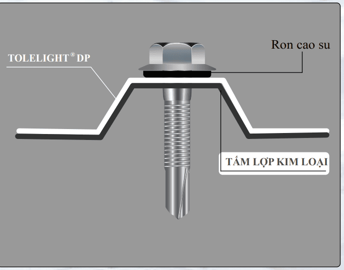 Khi sử dụng vít cần phải bắt đúng vị trí và dùng một lực vừa phải nhằm không làm biến dạng con ron và bề mặt tấm lợp.