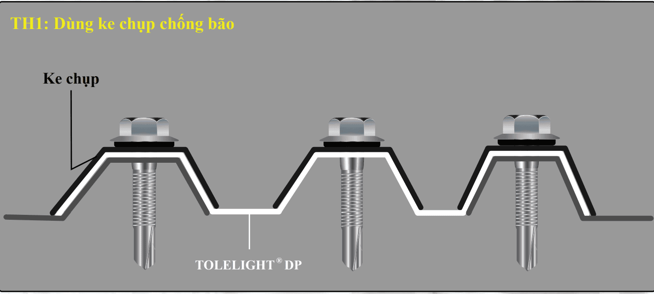 Trong trường hợp tấm lợp lấy sáng được sử dụng trong vùng có gió bão, nên sử dụng theo những phụ kiện đi kèm trong quá trình lợp nhằm gia cố chắc chắn thêm cho tấm lợp được vững chắc không bị bào mòn ngay vị trí của con vít đi qua.