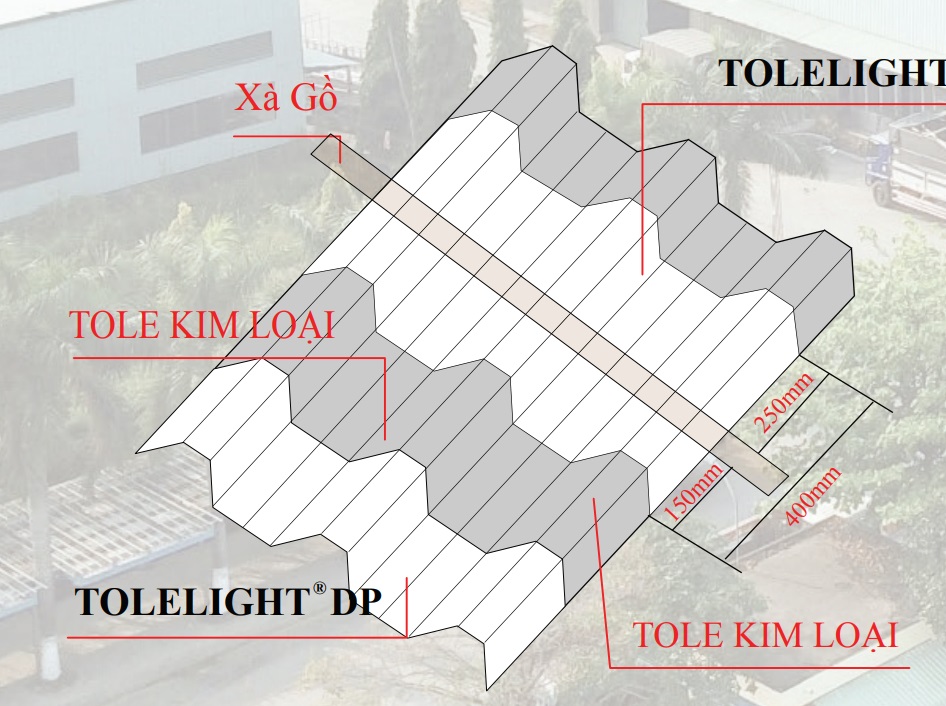 Tấm lợp lấy sáng TOLELIGHT® DP được sản xuất trên dây chuyền hoàn toàn tự động từ nhựa polyester không no gia cường sợi thủy tinh chất lượng cao. Bề mặt được phủ màng phim heatsealable DuPont (nay là Mylar® Specialty Films U.S) – thương hiệu danh tiếng hàng đầu thế giới, giúp tăng cường độ bền, khả năng truyền sáng cao. Sản phẩm có thiết kế đa dạng kiểu sóng, và đạt tiêu chuẩn quốc tế ASTM D3841.